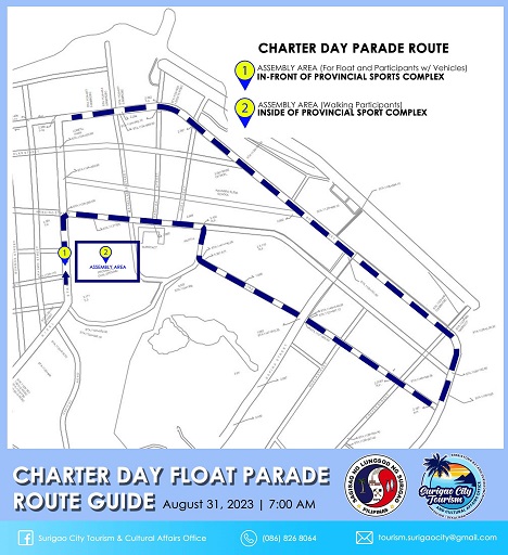 Participants are urged to gather at the Provincial Sports Complex no later than 6:00 AM to ensure a smooth and vibrant start to the day’s festivities. Let’s keep the celebratory spirit high as we mark this significant milestone in Surigao City’s journey.