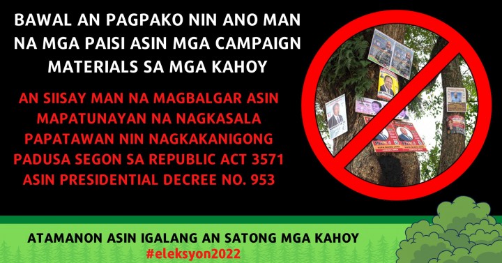 Atty. Ian Lee Ananoria, provincial election supervisor of Negros Occidental, also appealed to candidates not to place their posters on trees, as it is considered “environmentally unsound,” or it is not good for the environment.
