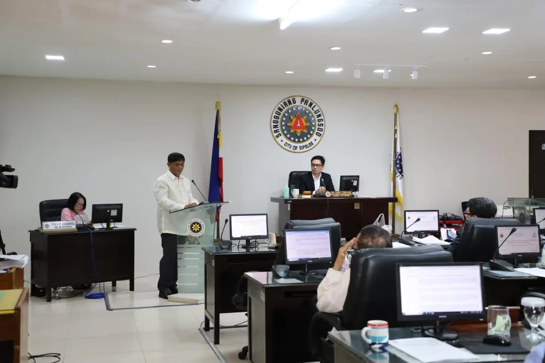 Si Floor Leader Atty. Jonald C. Napigquit, atol sa Privilege Hour sa regular session sa SP kagahapong adlawa, Disyembre 20 ning tuiga, ang mipadangat sa iyang mainitong pagdawat, sa ngalan sa Konseho, ni Banga human kini midaog sa piniliay sa pagka-Presidente sa Liga ng mga Barangay ning dakbayan.