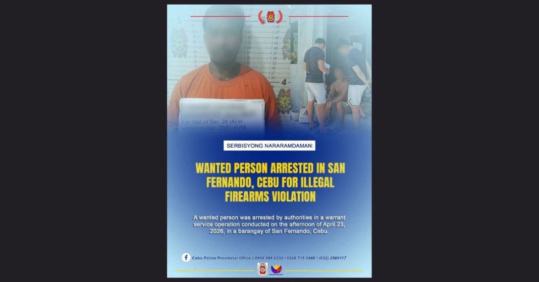 Nadakpan sa kapulisan ang usa ka wanted person atol sa operasyon sa San Fernando, Cebu niadtong miaging hapon.