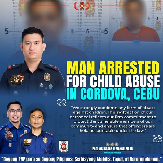 Usa ka 40-anyos nga lalaki nasikop tungod sa giingong pag-abuso sa bata niadtong nakalabay nga gabii sa Purok 5, Barangay Catarman, Cordova, Cebu.