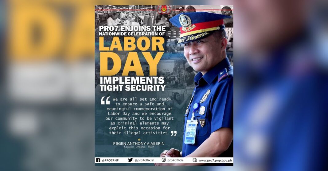 “We are all set and ready to ensure a safe and meaningful commemoration of Labor Day and we encourage our community to be vigilant as criminal elements may exploit this occasion for their illegal activities”, pamahayag ni PBGEN ABERIN.
