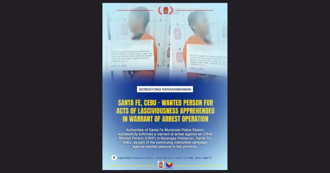 Nadakpan sa kapulisan ang usa ka 49-anyos nga lalaki nga wanted tungod sa kasong acts of lasciviousness sa Santa Fe, Cebu niadtong milabay nga adlaw.