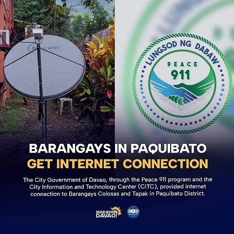 Davao City – 3 ka mga barangay sa Paquibato ang nakabitan na ug internet connection kini ang gikumpirma sa City Government of Davao pinaagi sa Peace 911 program ug City Information and Technology Center (CITC).