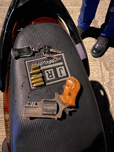 Gikumpiska gilayon sa kapulisan ang nakuhang armas ingon man ang gisakyang motor niini.