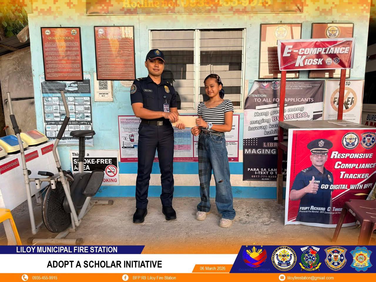 Ubos sa direktiba ni Acting Municipal Fire Marshal Dave C. Dela Cruz, boluntaryong naghatag og tabang ang mga personnel sa Liloy Municipal Fire Station ngadto sa napiling scholar sa kalihokan nga gipahigayon niadtong Marso 6 sa ilang estasyon.