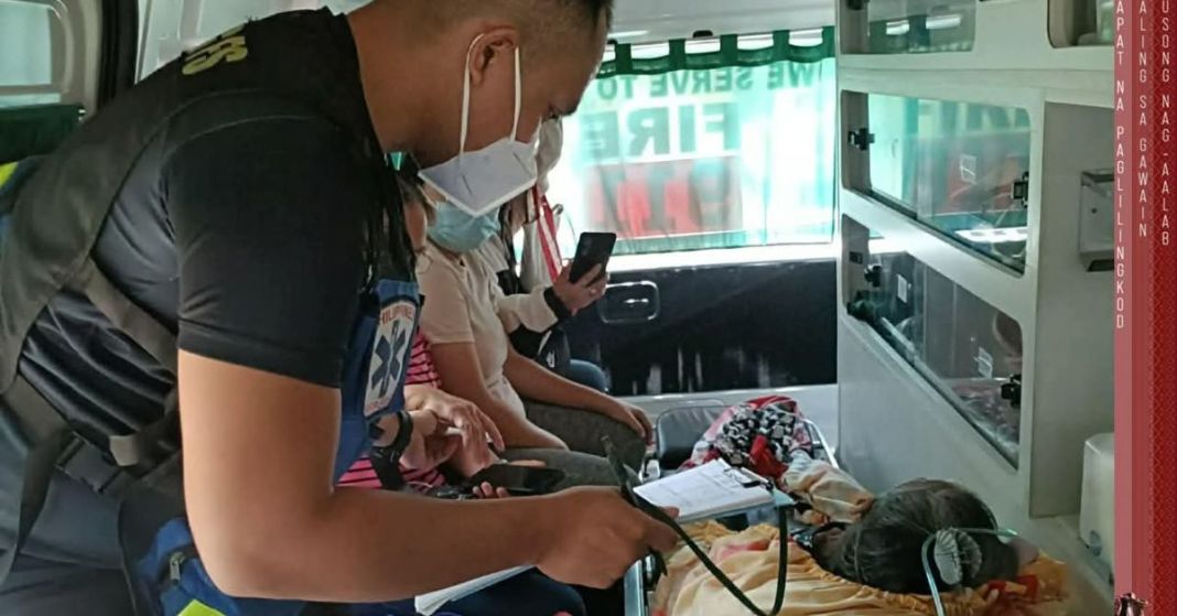 Gihatagan daun og unang tabang ang pasyente pinaagi sa paghatag og oxygen gamit ang non-rebreather mask samtang gihulat ang dugang nga medikal nga suporta.(JENNIFER JR. DELICA)