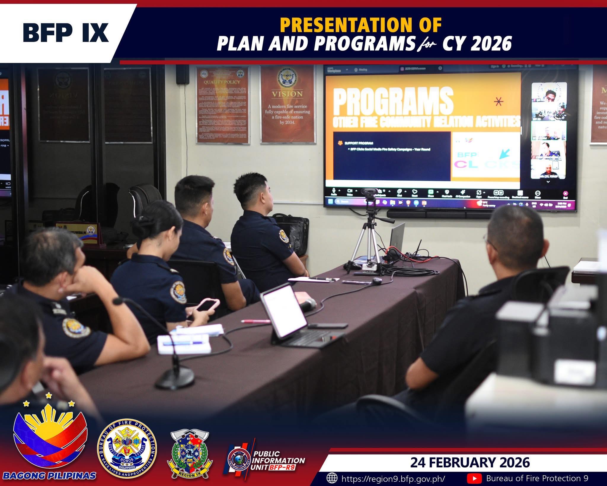 Zamboanga City – Nagpresentar sa ilang mga plano ug programa alang sa 2026 ang mga Fire Marshal gikan sa Zamboanga Peninsula ug Sulu Province atubangan sa Bureau of Fire Protection Regional Office 9 pinaagi sa Zoom platform. Gipangulohan ang maong kalihokan ni Regional Director Jerry D. Candido.