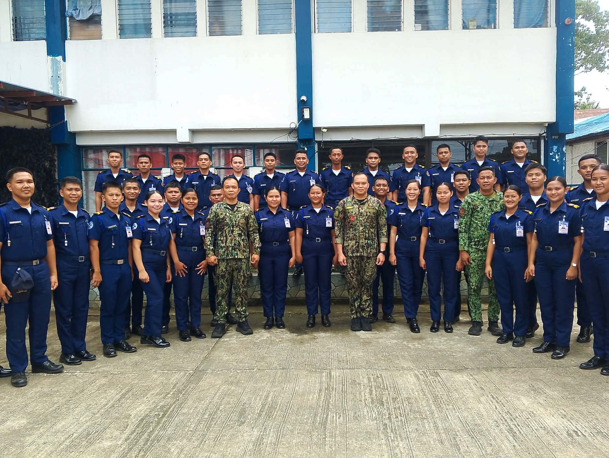 Naghatag og makapadasig nga mensahe si PLTCOL Ryan Jay R. Capurcos, Force Commander sa First Zamboanga del Norte Mobile Force Company, ngadto sa mga intern nga estudyante sa Saint Vincent’s College.