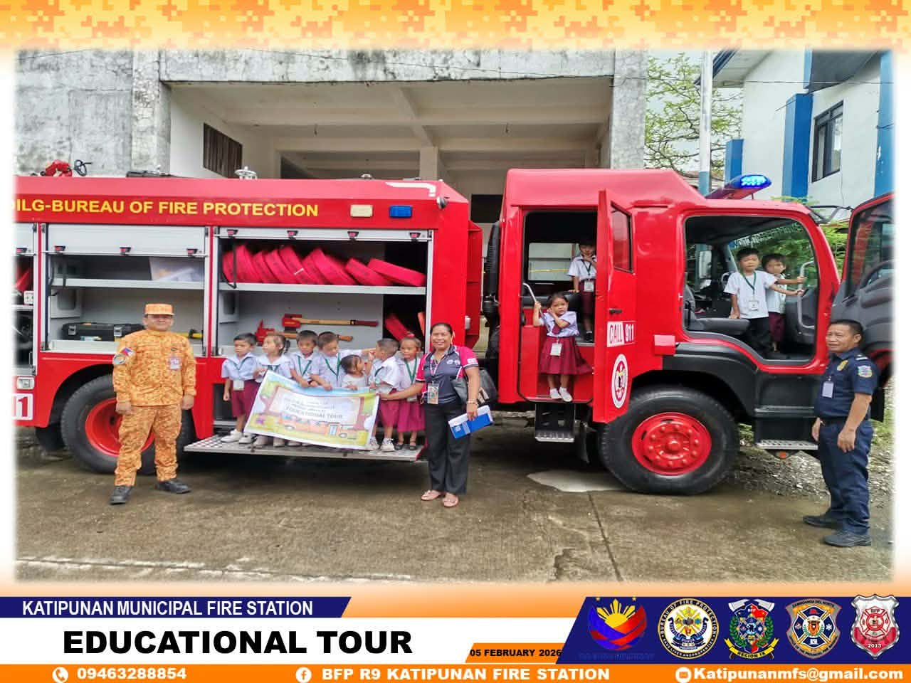 Mainiton nga gidawat sa Bureau of Fire Protection personnel sa Katipunan Municipal Fire Station ang mga kabataan gikan sa Child Development Center sa Barangay Langatian, Roxas, Zamboanga del Norte, isip kabahin sa ilang educational tour ug station visit.