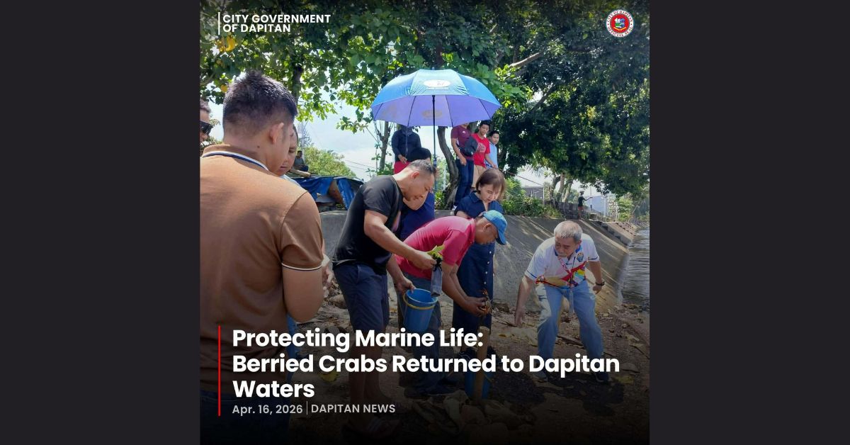 Gibuhian sa kadagatan sa Dapitan City pinaagi sa City Agriculture Office ang duha ka berried crabs ngadto sa Dapitan River niadtong Abril 16 aron suportahan ang ilang natural nga pagpananom ug pagpadaghan sa dagat.