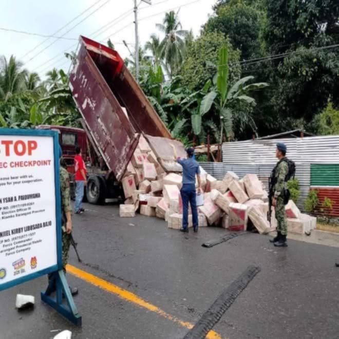 Una niini, gipara sa kapulisan sa naasoy nga Checkpoint ang usa ka kolor maroon nga 10-wheeler Dumptruck Plate No. WQV-392 ug sa gihimong plain view inspection, mitambad sa mga mata sa kapulisan ang daghang karton sa kahon sa mga sigarilyo nga maoy kargamento sa nasampit nga Dumptruck nga gimaneho ni alyas “Ray”, legal age, minyo, residente sa Purok Isaac Abalayan, San Jose, Davao Del Sur.