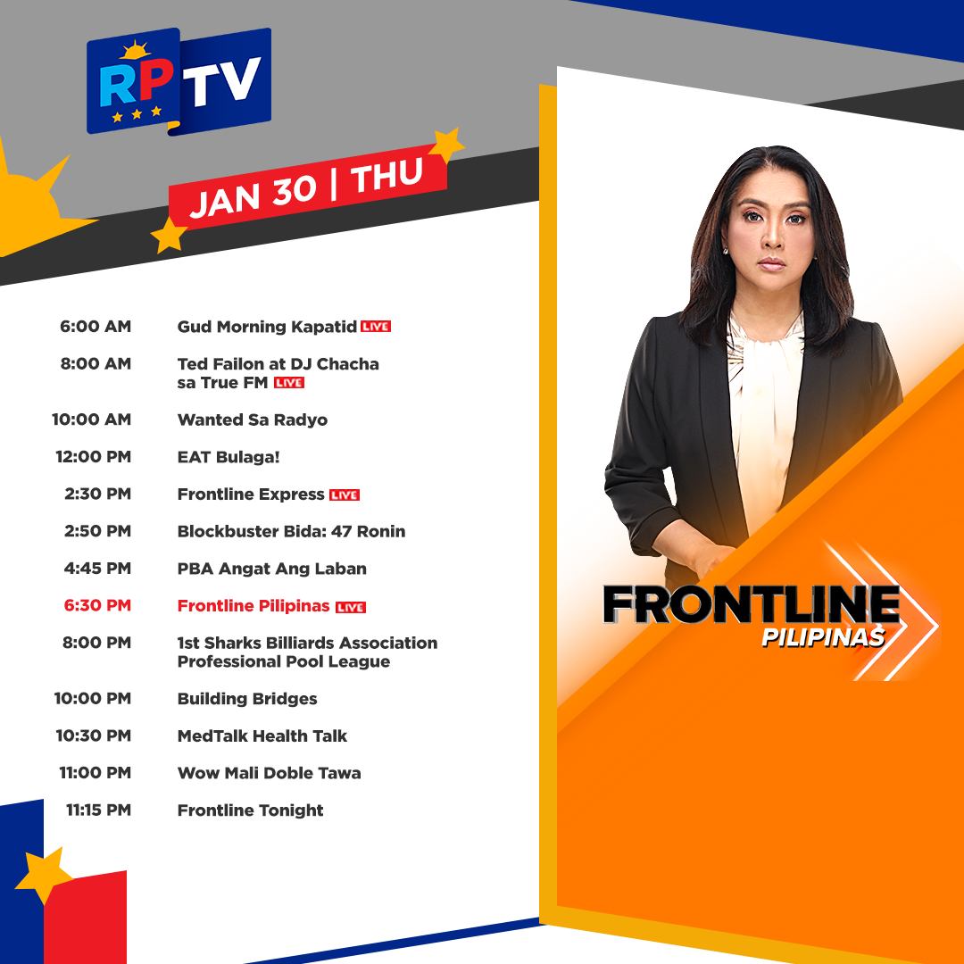 Happy Thursday, Noypi! Papawiin namin ang inyong thirst for hard-hitting news and useful information sa mga pangyayari sa loob at labas ng bansa! Samahan ang buong pwersa ng News5 sa balitaan sa #FrontlinePIlipinas mamayang 6:30PM! Talagang tatatak ang Huwebes sa mga programang aming hatid! Manood na ng #RPTV, Channel 9 sa Free TV at Channel 19.1 sa DTT, mula umaga hanggang hatinggabi! #ParaSaPinoy