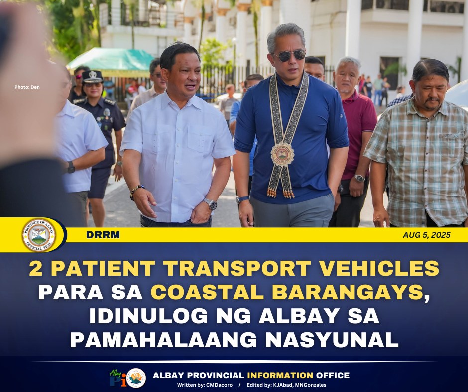 (Legazpi City, August 5, 2025) Idinulog ni Albay Governor Noel E. Rosal sa national government ang karagdagang dalawang (2) patient transport vehicles na target ilagay sa mga coastal barangays.