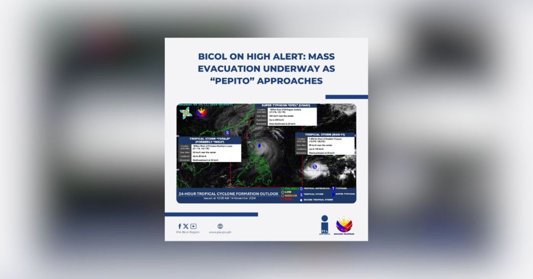 Thousands of residents are being readied for evacuation as the storm is forecast to enter the PAR tonight, Thursday, and potentially intensify into a typhoon by Friday morning. “Pepito” is expected to make landfall between the eastern coasts of Eastern Visayas and Central Luzon during the weekend, (November 16 or 17).