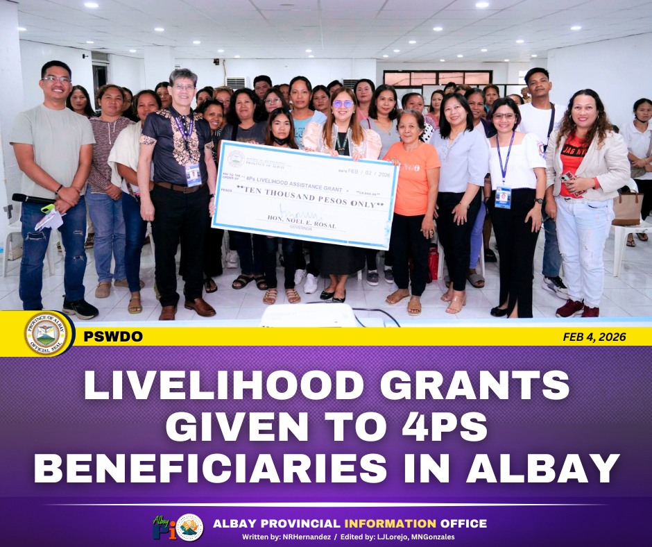 The Provincial Government of Albay distributed Livelihood Assistance Grants to Pantawid Pamilyang Pilipino Program (4Ps) beneficiaries through the Provincial Social Welfare and Development Office in partnership with the Department of Social Welfare and Development.