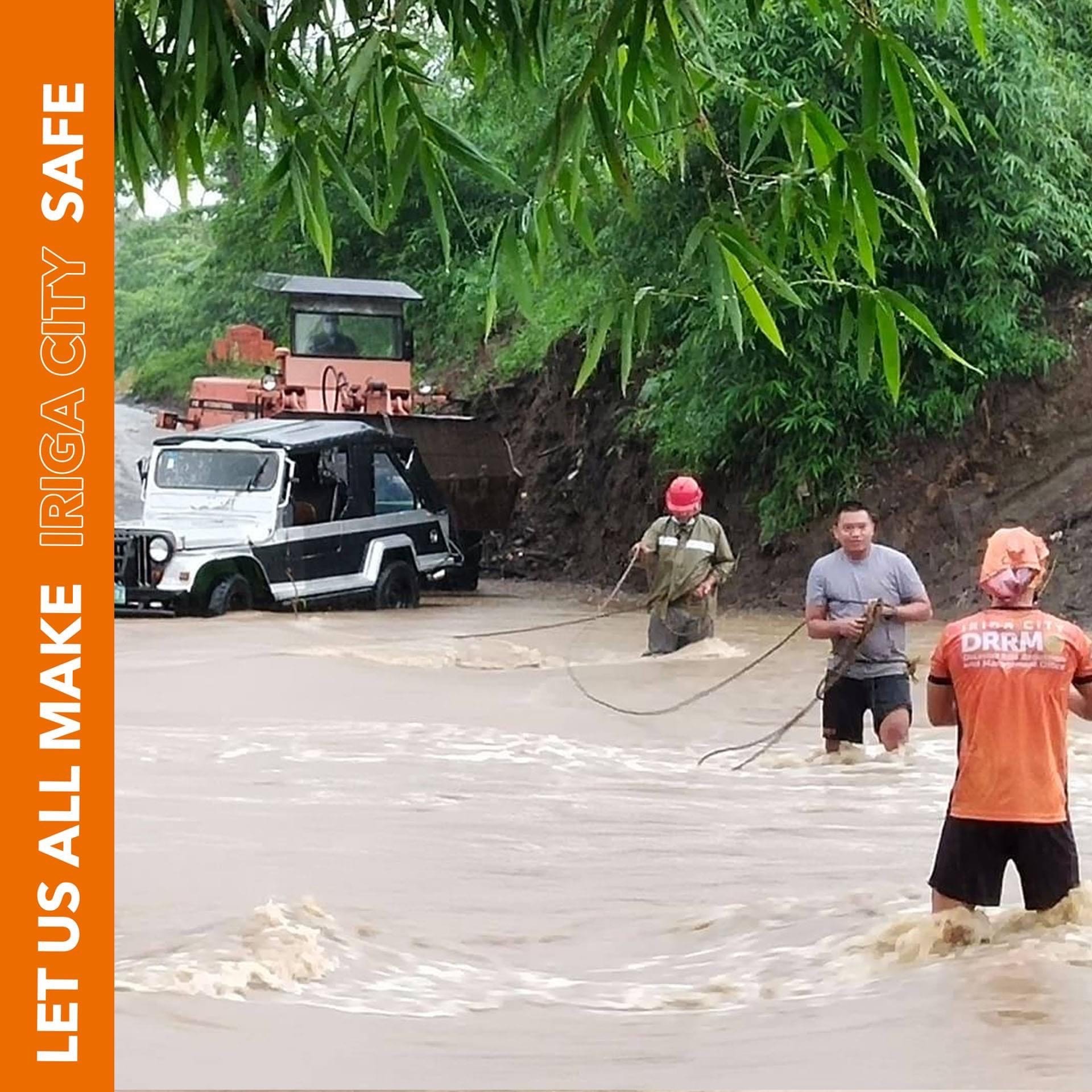 Iriga City – Dahil na rin sa magdamag na ulan ay umapaw ang tubig sa Spillway sa Waras River, San Jose Iriga, Iriga City kung saan naitangay ng malakas na current ng tubig ang dumaang puting Owner Type Jeep sakay ng anim (6) na katao.