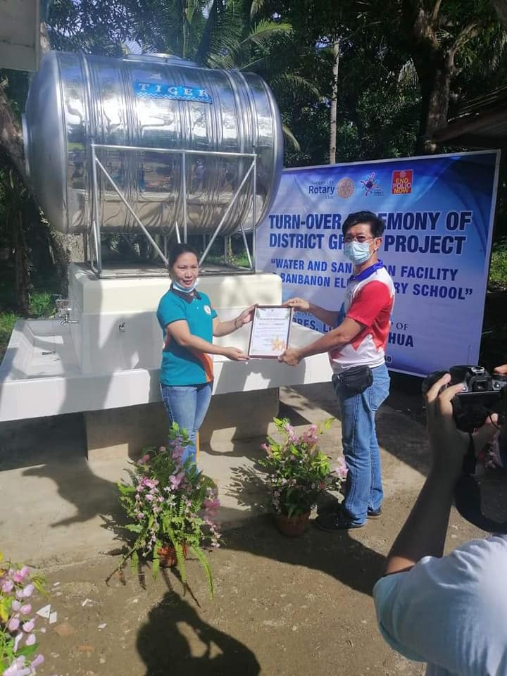 Banbanon Elementary School Teaching Staff with their Head Teacher III Jelynrose Mahinay, PTA President Jocelyn Dela Torre and Punong Barangay Jaime Cortes expressed their deepest gratitude for the support of the Rotarians in the needed hand washing facility.