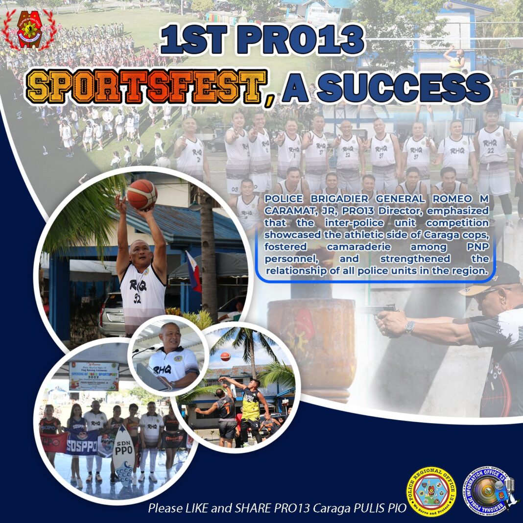 POLICE BRIGADIER GENERAL ROMEO M CARAMAT, JR, PRO13 Director, emphasized that the inter-police unit competition showcased the athletic side of Caraga cops, fostered camaraderie among PNP personnel, and strengthened the relationship of all police units in the region.