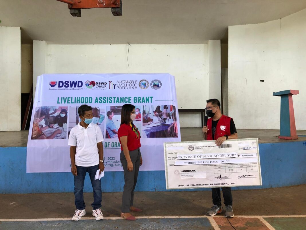 A total of 338 beneficiaries from Marihatag, San Miguel, Tago, Cortes, Lanuza, Carmen, and Carrascal, Surigao del Sur received the Livelihood Assistance Grant from the DSWD Field Office Caraga, recently.