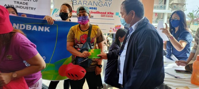 Maraming salamat DTI! Noong December 30, 2021, nag-distribute ang DTI ng 300 gift cards para sa ating mga negosyanteng nasalanta ng bagyo sa Dapa, Del Carmen at General Luna. Ito ay kaugnay ng Livelihood Seeding Program – Negosyo Serbisyo sa Barangay ng DTI. Bawat gift card ay may lamang ₱ 8,000 na pwedeng magamit ng ating mga negosyante sa pagbili ng mga goods upang masimulan muli ang kanilang business.