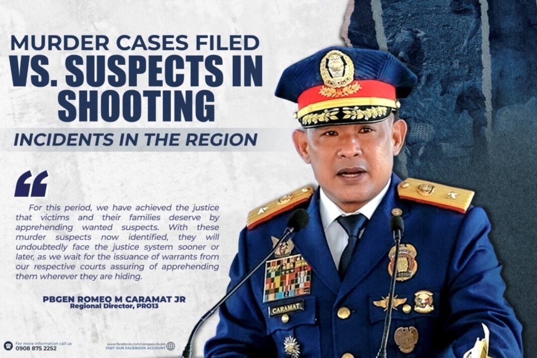 Since PRO13 Regional Director POLICE BRIGADIER GENERAL ROMEO M CARAMAT JR has outspoken vow to embark on a stricter campaign against individuals who committed heinous crimes, Caraga police have double the efforts to apprehend them, lawbreakers, particularly identifying murder suspects for filing of cases.