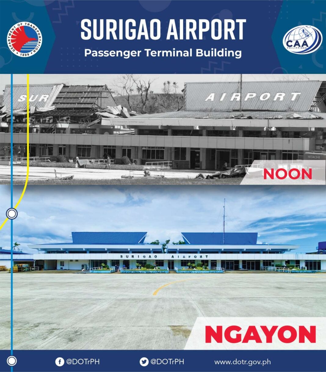Ang pagbangon at pagbabago ngayon sa Surigao Airport ay tiyak nang makapagbibigay ng mas maunlad na ekonomiya at komersyo sa lugar, at makapaghatid ng mas maraming oportunidad para sa ating mga kababayan.