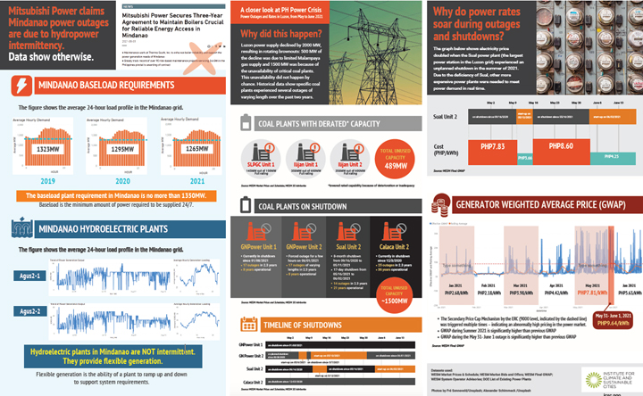 Unfortunately, Mitsubishi made two crucial errors in its statement. First, Mindanao has more than enough baseload capacity because its requirement is no more than 1,350 megawatts (MW), while coal dependable capacity in Mindanao alone is 2,041 MW, according to DOE data. Geothermal will add another 104 MW to Mindanao’s baseload capacity. Moreover, a quick look at the June to August 2021 hydropower operations in Mindanao does not show the intermittency claimed by Mitsubishi. Hydropower is known to be seasonal—but not intermittent.
