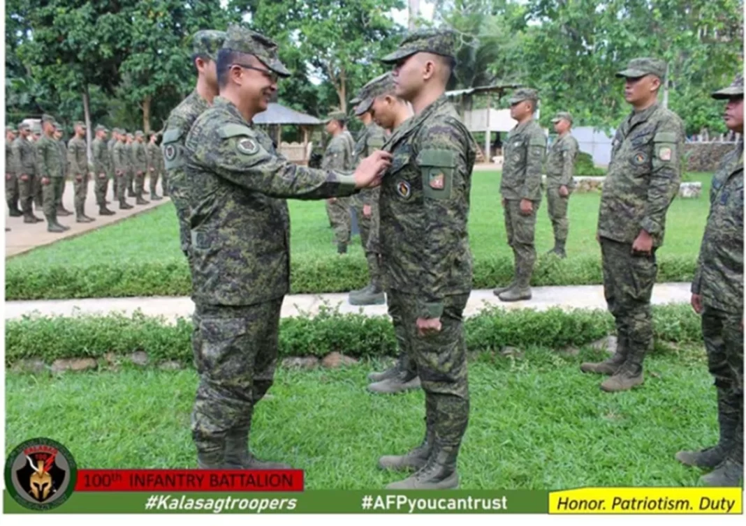 El Fuersa Armada del Pilipinas ya promover (promote) sinco oficiales y ocho personajes del 100th Infantry “Kalasag” Battalion (IB) para na siguiente alto ranggo.