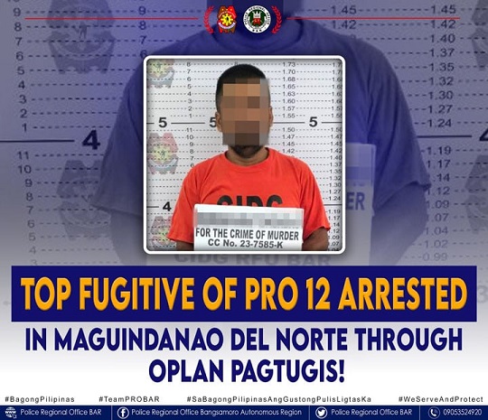 Un persona mas buscada el ya aresta el mga autoridad na un operacion de aplicacion de ley na provincia del Maguindanao del Norte, asegun con el policia del Viernes.